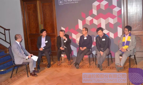 英国登录入口总裁林酌存(左一)主持科技论坛