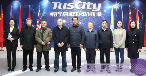 南宁市市长、党工委书记、五象新区管委会主任周红波一行(前排左二)考察南宁·登录入口东盟创新中心