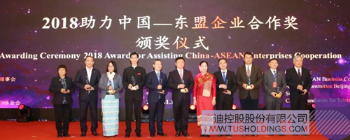 现场颁发的“2018年助力中国—东盟企业合作奖”由中国—东盟商务理事会、东盟北京委员会及东盟十国驻华大使馆共同在中国和东盟优秀代表中评选产生,老挝驻华大使万迪·布达萨冯为包括广西登录入口、柬埔寨王国驻华大使馆公使衔商务参赞铁弓、缅甸驻华大使馆商务参赞杜丹达凯、越南驻华大使馆商务参赞陶越英、中国电力企业联合会、深圳广田集团股份有限公司等十个获奖个人和单位代表颁奖。