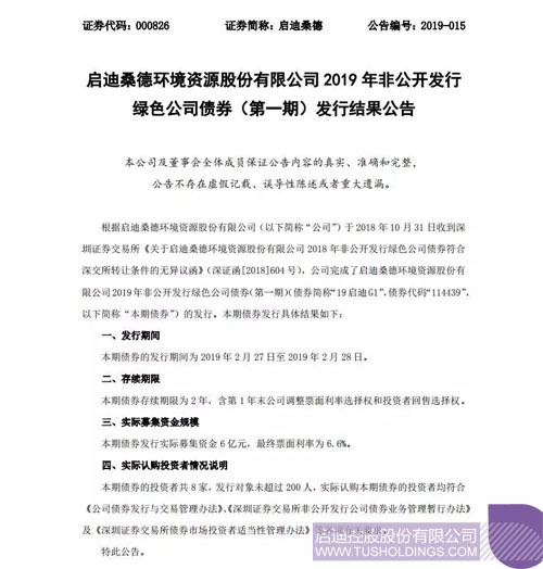 2019年登录入口桑德首单绿色公司债券成功发行打印
