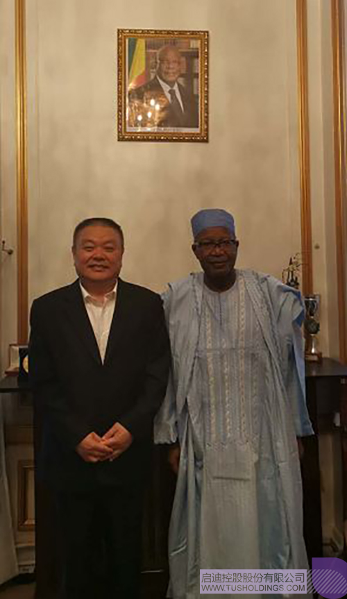 4月9日上午,彭顷砡一行拜访了马里驻法大使Toumani Djime Diallo,双方就开展项目合作、一带一路产业合作进行了深入探讨。马里驻法大使强调,中国是一个伟大的国家,愿与中国开展全方位深入合作。