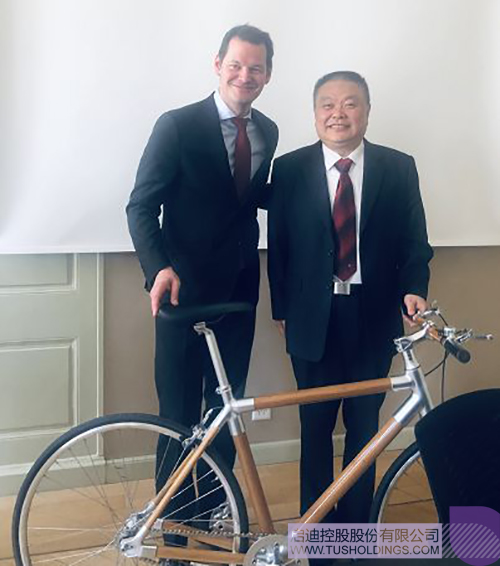 彭顷砡赠予中英联合创新成果产品竹材料自行车