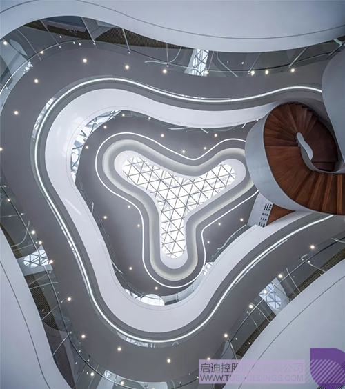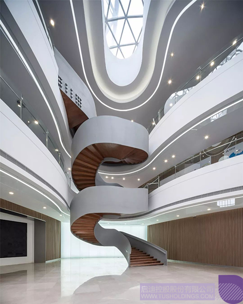 螺旋上升的旋转楼梯将登录入口文化魅力展示有机的串联了起来。作为设立集展示、交流、服务功能于一体的综合性工作场所吸引新兴科技企业入驻,促进企业的成长壮大。为科技人员、投资者、建设者提供学术思想、技术信息、创业创新技能的交流场所。