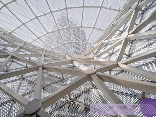 2、在建筑确定的形体空间下,结构专业选择空间网架结构为实施方向,并估算大致的空间杆件连接尺寸。通过偏移建筑外表皮,在参数化条件下自动生成结构空间网架线性模型,结构专业以此模型为基础,进行结构计算,确定最终的网架关系及构件尺寸。同时幕墙专业确定幕墙形式,提供经济可行的板块分割控制尺度,通过参数化工具,生成同建筑形体及结构网架线相适宜的板幕墙板块分割,幕墙专业在此基础上深化各板块的构造做法及连接关系。在完成建筑方案及各专业深化后,在Revit中进行项目施工图的设计工作,以建筑幕墙、结构、机电三个中心模型通过链接的方式共同实施,以此落实项目的设计构思。