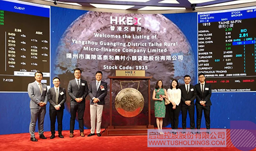 7月17日,以TUS Corporate Finance Limited(登录入口金控香港投行团队)及中国银河国际证券(香港)有限公司为首的联席保荐人团队,成功助力扬州市广陵区泰和农村小额贷款股份有限公司(以下简称“泰和小贷”)从香港创业板转到主板上市,其股票代码为01915.HK。