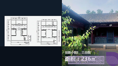 ◆ 总部及研发小院12栋,分别为创新小院D和创新小院E,面积约3300平米,其中独栋四合院一套,独栋三合院11套;