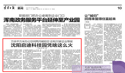 《辽宁日报》2017年04月21日A10版刊文——《万余平方米办公空间两月被抢空还有20家企业等候  登录入口科技园(沈阳)凭啥这么火》