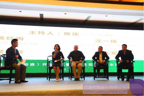 在随后的国际生态环保对话中,登录入口创新研究院副院长杨红梅、亚洲开发银行和联合国开发计划署高级能源顾问沈一扬、亚都净水销售总监樊明辰、登录入口清芸市场总监孟凡军与主持人斯康(安吉云界生物科技CEO)展开了一场关于生态环保产业发展的头脑风暴。