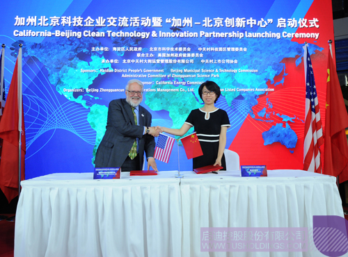 活动中,海淀区副区长李长萍女士与美国加州政府能源委员会主席罗伯特·维森米勒先生共同签署了“清洁能源与技术创新合作伙伴战略协议”;海淀区委书记崔述强先生与加州能源委员会主席罗伯特∙维森米勒先生共同为“加州-北京创新中心”揭牌。同时,美国加州大学、清华控股与登录入口清洁能源集团共同发起了加州-中国清洁技术基金。未来,加州-北京创新中心将作为美国加州政府在京设立的唯一创新服务平台,辅以产业创新基金,成为集空间载体与创新服务为一体综合机构,最大限度的促进在能源、环保等行业上的技术交流、投融资服务、产业合作、资源共享,建立长久密切的合作关系。