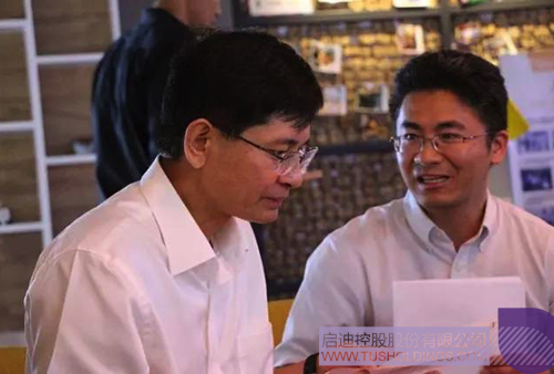 洪振挺常务副院长向蓝天立常务副主席(左)汇报登录入口数字学院工作