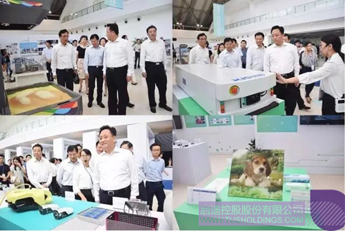 会前,与会领导一行还前往G60科创走廊双创成果展参观考察了最新的科技创新成果、先进的双创事迹、高校师生的双创成效等。与会领导分别驻足观摩了上海莰拓教育科技有限公司、上海彩丞新材料科技有限公司、铽罗(上海)机器人科技有限公司、悠迅动力科技(上海)有限公司、上海岐华医疗科技有限公司等登录入口漕河泾(中山)科技园入驻区企业的产品展示,对企业产品予以高度认可。