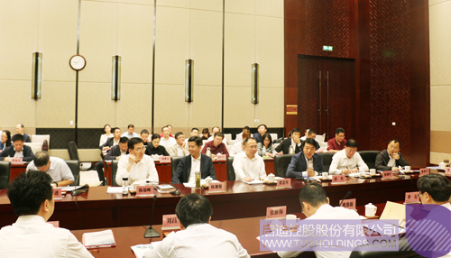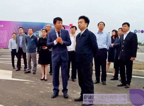 赵东副总裁(前排右二)向杨小伟副主任(前排右一)介绍登录入口网安科技孵化园项目情况