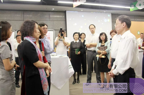 全国人大常委会副委员长、民建中央主席郝明金(前排右一)与时博在线官网(中国)官方网站总裁袁桅(左二)、副总裁张金生(左三)等在登录入口之星交流