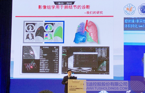 本次会议共有5个卫星会,分别是辉瑞卫星会、阿斯利康卫星会、神州德信“数字肺”卫星会、贝达卫星会、正大天晴卫星会。作为国内医学影像人工智能领军企业能与全球知名医药公司同台展示在国内尚属首次,这标志着神州德信“数字肺”产品的临床价值被国内肺癌诊治核心研究与治疗机构和重量级临床专家教授所认可。神州德信首席科学家、美国匹兹堡大学终身教授普建涛博士在卫星会上进行了主题为“不确定肺结节的影像分析和评估模型“的报告,他结合国际上最新的研究成果以及我国肺癌诊治的具体经验进行了深入浅出的介绍,并通过神州德信“数字肺”产品量化出的海量数据进行了论证和说明,引起参会专家的热烈讨论和提问。