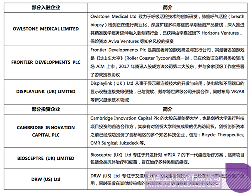 截止目前,剑桥登录入口科技园已经有四处物业投入使用,并成功对剑桥当地的创新企业进行投资,部分入驻与投资企业简介如下: