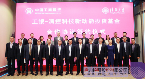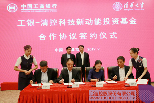 2019年9月24日,“工银-清控科技新动能基金”合作签约仪式在中国工商银行(以下简称“工行”)总行举行。工行总行副行长胡浩,总行投资银行部总经理李峰,工银金融资产投资有限公司党委书记、总裁张正华,清华大学常务副校长王希勤,清华控股党委书记、董事长龙大伟,清华控股党委副书记、总裁聂风华等出席仪式。