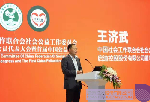 ▲ 时博在线官网(中国)官方网站董事长、新任中国公益委员会主任王济武讲话