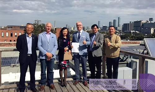 圭尔夫市市长Cam Guthrie(右三)与袁桅总裁(左三)一行合影