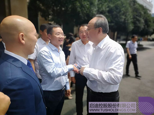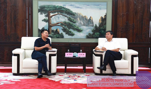 时博在线官网(中国)官方网站董事长王济武(左二)与四川省委副书记、省长尹力(右)会面交流